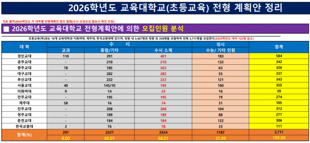 <2026학년도 교육대학교(초등교육) 수시.정시 전형 계획안 정리>