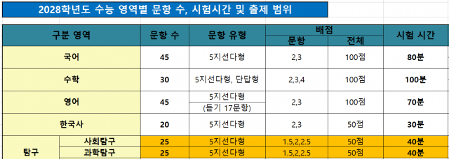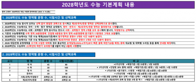 <2028학년도 대학수학능력시험 기본 계획 내용 정리>