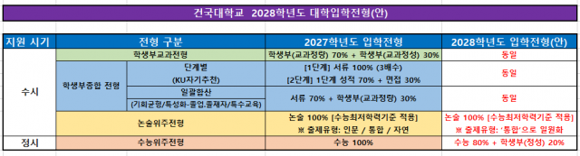 <건국대학교 2028학년도 대학입학전형 시행계획(안) 발표 내용을 보면서>