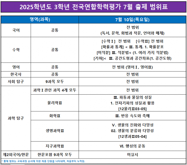 <2025학년도 고3학년 7월 학력평가 시행 안내>