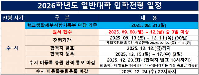 <2026학년도 수시 모집 대입 일정표와 수시 지원시 유의사항 안내>