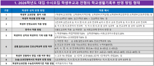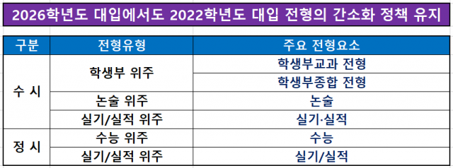 <2026학년도 대입 전형유형과 지원 시기별 모집인원 현황 정리>