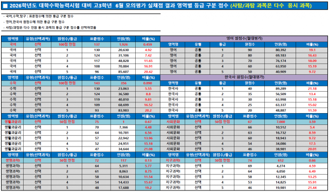 <2026학년도 대학수학능력시험 대비 고3학년 6월 모평 채점 결과 (축약본)>